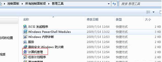 2、然后在控制面板中找到并选择打开“管理工具”图标,在管理工具窗口中点击“计算机管理”选项;如图所示: