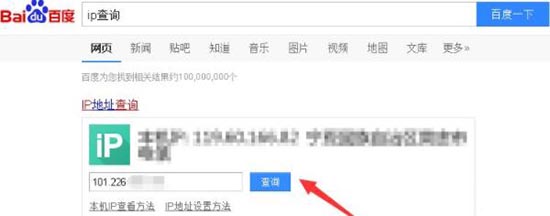 7、最后在百度中搜索“IP查询”,即可输入对应的IP地址来确定QQ好友的当地所在位置。如图所示: