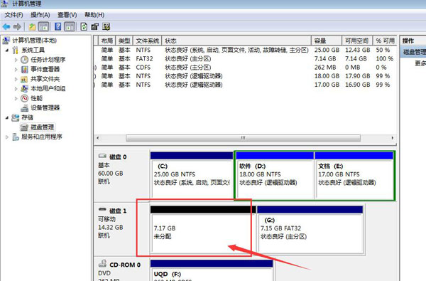 u盘在生活中被广泛使用,但容易出现各种问题。最近,一位网友在论坛上咨询了u盘的未分配空间。 u盘的未分配空间将导致u盘的实际容量变小,打开磁盘管理以查看u盘将显示未分配空间。接下来,我们使用diskgenius分区工具合并u盘的未分配空间。让我们看一下详细步骤。